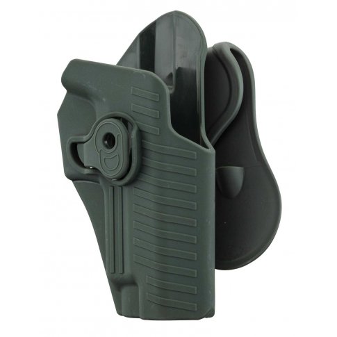 Profilowany i dedykowany kształt jest gwarancją bezpieczeństwa. Pistolet, wiatrówka co2 czy replika ASG leżą w niej nieruchomo. Można dzięki temu spokojnie przemieszczać się pieszo czy samochodem, bez obaw, że wypadnie. Ważne jest, że kabura posiada blokadę spustu w formie przycisku Quick Release. W tym przypadku użytkownik chroniony jest przed przypadkowym wystrzałem. Z tym modelem można biegać i mieć pistolet ciągle blisko siebie, co sprawdzi się w rozgrywkach airsoft albo podczas konkursów w strzelectwie dynamicznym.